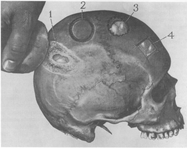 Historically, the procedure can be dated back to around 7,000-10,000 BC, where early skulls have been located from Incan and Mayan burial and refuse sites, as well neolithic human sites in Europe. These skulls show apertures that do not appear to have been caused by contusion or trauma, leaving archeologists to conclude that the holes are intentional. Before one makes any assumptions as to the apparent barbarism of these early procedures, consider this: evidence of bone growth over the created aperture shows that the majority of those who underwent the procedure appeared to have survived, to the tune of 70-90%. Compare that with the current 19th century rates of survival that stand at little more than 10%. I will speak more of this paradox in the later installments of this essay.